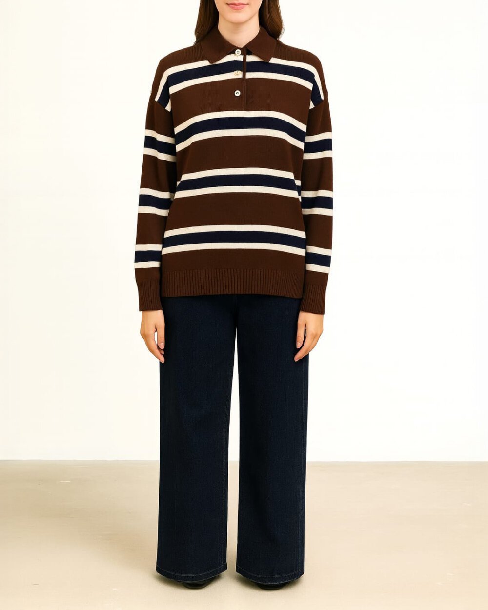 Detay: Triko kumaştan üretilen bu kazak, polo yaka ve önü patlı tasarımıyla klasik ve fonksiyonel bir kullanım sunar. Çizgili yüzey dokusu modele hareket kazandırırken, rahat kalıbı gün boyu konfor sağlar. Uzun kollu yapısı ve rib detaylı manşetleri formun korunmasına yardımcı olur. Günlük kullanıma uygun olan model, farklı alt parçalarla kolayca kombinlenebilir.