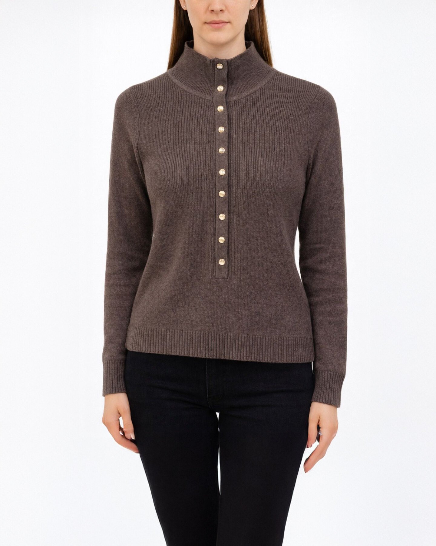Detay: Yumuşak dokulu triko kumaştan üretilmiştir. Dik ve hafif yükseltilmiş yakası sayesinde boyun bölgesini nazikçe sararak konforlu bir kullanım sunar. Ön kısmında yer alan düğme detayları tasarıma modern ve fonksiyonel bir görünüm kazandırır. İnce fit kalıbı vücuda dengeli bir şekilde oturur, hareket özgürlüğünü kısıtlamaz. Uzun kollu yapısı ve rib detaylı manşetleri ile formunu korur. Günlük kullanımdan ofis stiline kadar farklı kombinlere uyum sağlayan zamansız bir parçadır.