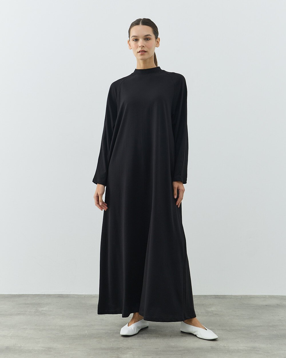 Bu uzun kollu siyah elbise astarı, gardırobunuzda çok yönlü ve kullanışlı bir parça olacak. Hem şıklığınızı tamamlarken hem de rahatlığınızı garantiler.