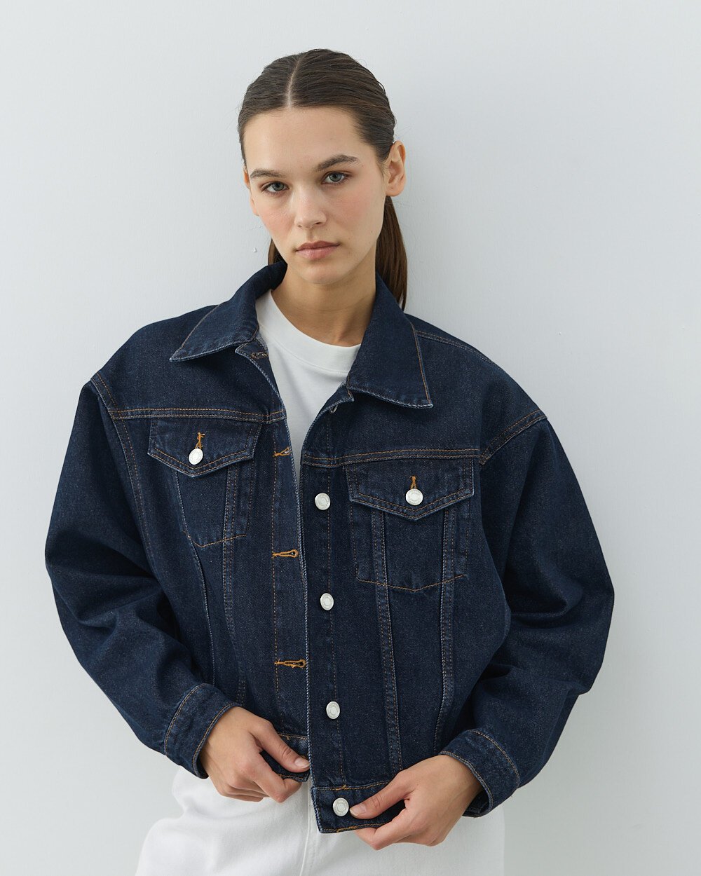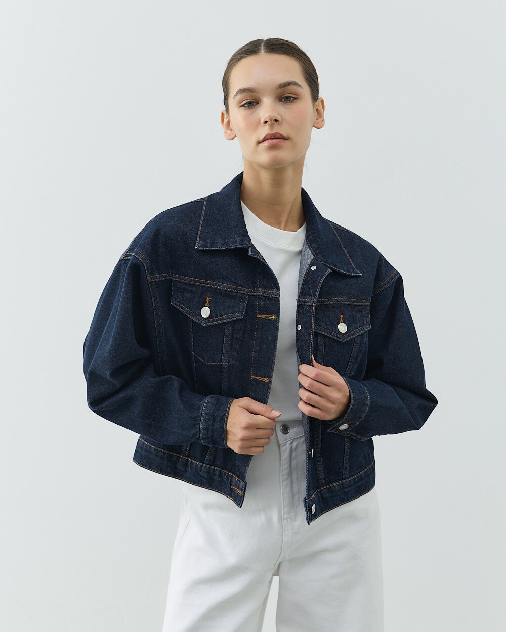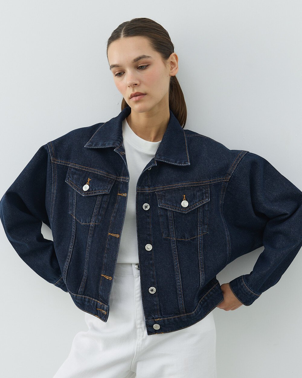 Detay: Yarasa kol kesimiyle modern ve rahat bir siluet sunar. Kısa boy tasarımı, bele oturan kombinlerde dengeli ve güçlü bir duruş sağlar. Dayanıklı denim kumaşı, uzun süreli kullanım için idealdir. Ön kısmındaki metal düğmeler ve cep detayları, klasik jean ceket stilini tamamlar. Mavi rengi sayesinde zamansız bir görünüm sunar ve dört mevsim kombinlenebilir. Günlük kullanımdan hafta sonu stiline kadar geniş bir kullanım alanı sağlar.