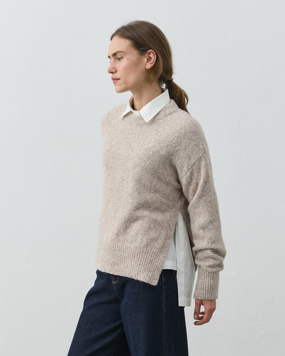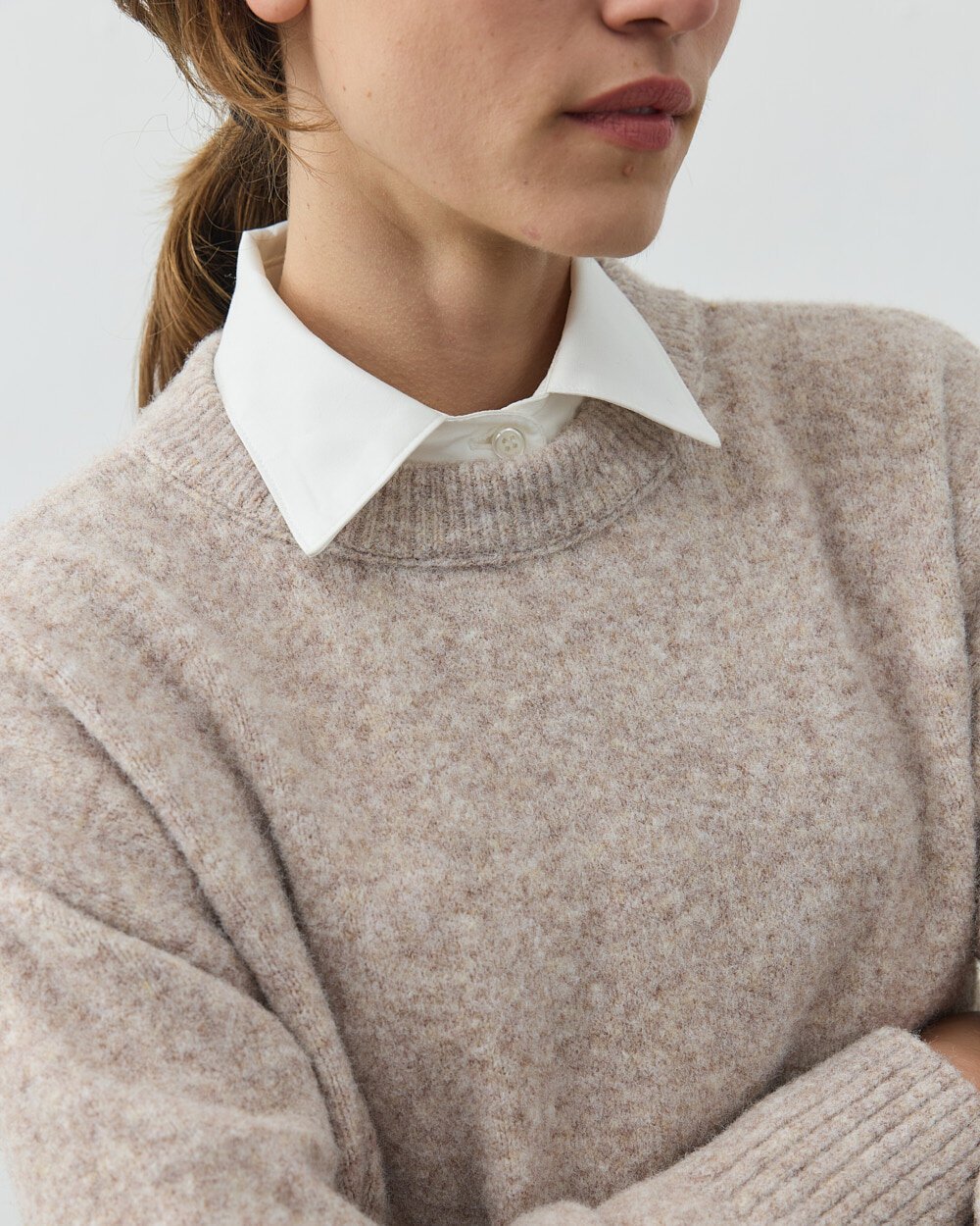 Detay: Yumuşak dokulu örme kumaştan üretilmiştir. Klasik yaka formu ve yan yırtmaç detayı ile modern ve rahat bir siluet sunar. Düz ve rahat kesimi sayesinde vücuda oturmadan konforlu bir kullanım sağlar. Yan yırtmaçlar hareket özgürlüğünü artırırken, ribana etek ve kol uçları formun korunmasına yardımcı olur. Gömleklerle birlikte katmanlı kombinlerde şık bir görünüm sunabildiği gibi tek başına da sade ve zamansız bir stil oluşturur. Günlük kullanımdan ofis stiline kadar geniş bir kullanım alanına sahip, sezonlar arası geçişlerde rahatlıkla tercih edilebilen bir kazak modelidir.