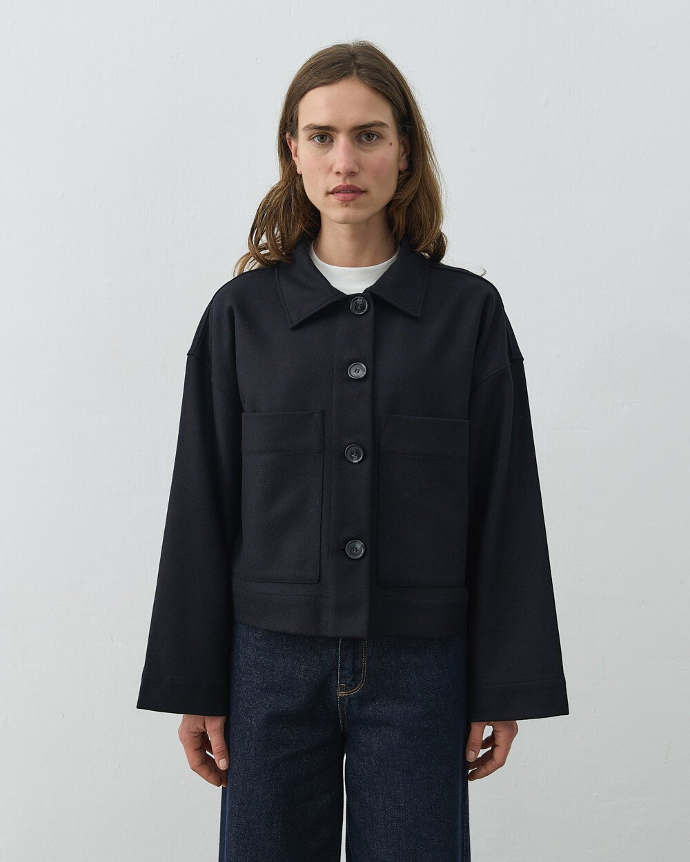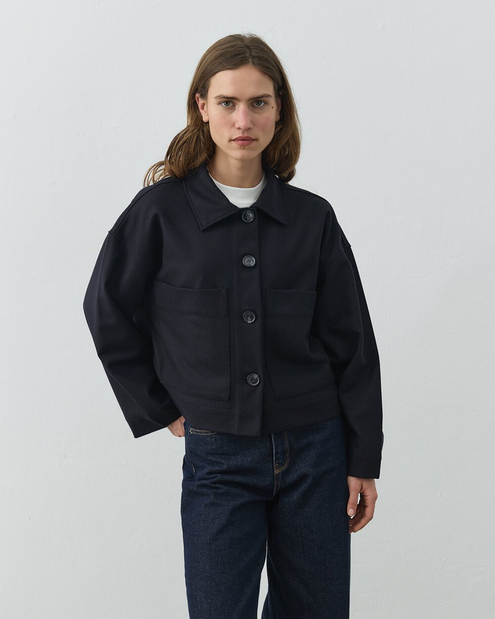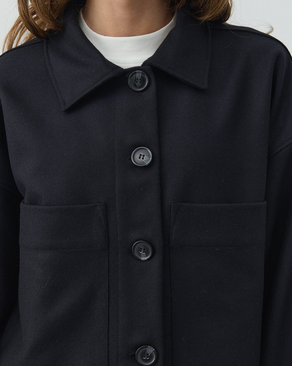 Detay: Düz ve yapılandırılmış formu ile zamansız bir dış giyim silueti sunan bu kısa kaban, minimal tasarımı fonksiyonel detaylarla birleştirir. Ön yüzeyde yer alan düğmeli kapama sistemi, sade ve dengeli bir görünüm sağlarken kullanım kolaylığı sunar. Geniş ve düz yaka formu, klasik kaban çizgisini destekler. Ön bölümde konumlandırılmış cepler, hem işlevsel kullanım alanı oluşturur hem de tasarıma hacim kazandırır. Düşük omuz kesimi ve düz inen kol yapısı, rahat bir kalıp sunarak katmanlı kombinlere uyum sağlar. Orta ağırlıktaki kumaş yapısı, mevsim geçişlerinde konforlu kullanım imkânı sunar. Kısa boy tasarımı sayesinde hem pantolon hem etek kombinlerinde dengeli bir oran oluşturur. Günlük ve şehir stiline uygun, çok yönlü bir dış giyim parçasıdır.