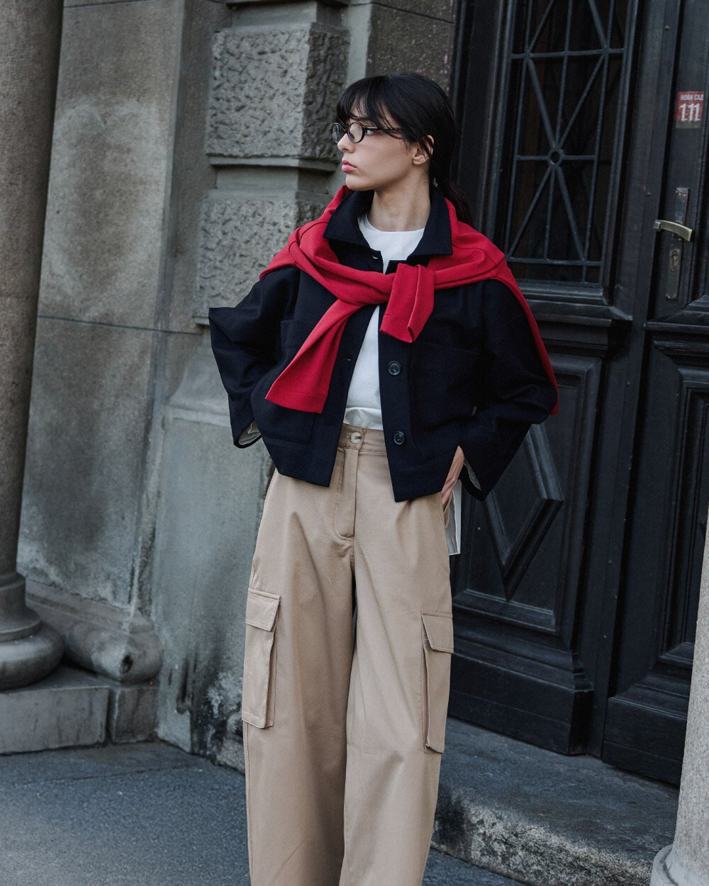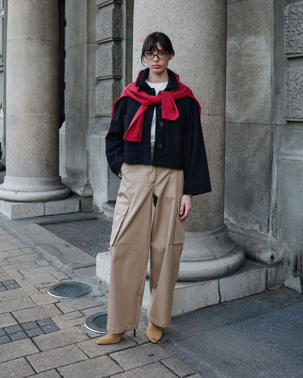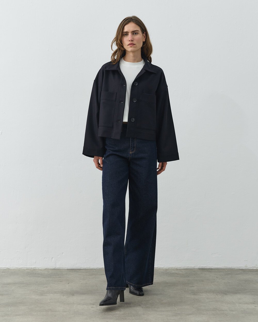 Detay: Düz ve yapılandırılmış formu ile zamansız bir dış giyim silueti sunan bu kısa kaban, minimal tasarımı fonksiyonel detaylarla birleştirir. Ön yüzeyde yer alan düğmeli kapama sistemi, sade ve dengeli bir görünüm sağlarken kullanım kolaylığı sunar. Geniş ve düz yaka formu, klasik kaban çizgisini destekler. Ön bölümde konumlandırılmış cepler, hem işlevsel kullanım alanı oluşturur hem de tasarıma hacim kazandırır. Düşük omuz kesimi ve düz inen kol yapısı, rahat bir kalıp sunarak katmanlı kombinlere uyum sağlar. Orta ağırlıktaki kumaş yapısı, mevsim geçişlerinde konforlu kullanım imkânı sunar. Kısa boy tasarımı sayesinde hem pantolon hem etek kombinlerinde dengeli bir oran oluşturur. Günlük ve şehir stiline uygun, çok yönlü bir dış giyim parçasıdır.