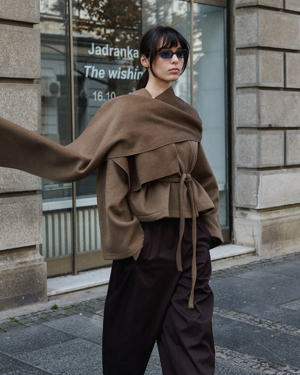 Detay: Dokuma kumaştan üretilen bu üst giyim parçası, omuzdan dökümlü yapısı ve geniş formu ile modern bir siluet sunar. Bel kısmında yer alan bağlama detayı vücuda uyum sağlayarak formu dengelemeye yardımcı olur. Geniş kol yapısı hareket özgürlüğü sağlarken, katmanlı tasarımı mevsim geçişleri için fonksiyonel bir kullanım sunar. Günlük ve şehir stiline uygun, özgün ve dikkat çekici bir tasarıma sahiptir.