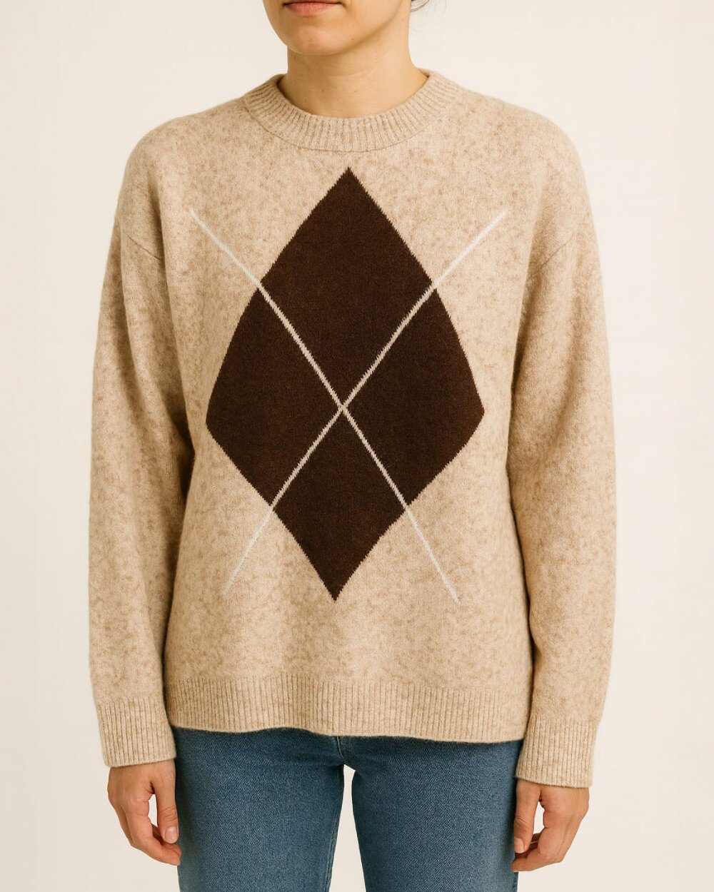 Detay: Triko kumaştan üretilen bu kazak, ön yüzeyinde yer alan geometrik desen detayıyla tasarıma hareket kazandırır. Bisiklet yaka ve uzun kollu yapısı günlük kullanım için konforlu bir form sunarken, rahat kalıbı vücuda dengeli bir oturuş sağlar. Rib detaylı yaka, manşet ve etek ucu formun korunmasına yardımcı olur. Günlük ve şehir kullanımına uygun, sade ve fonksiyonel bir tasarıma sahiptir.
