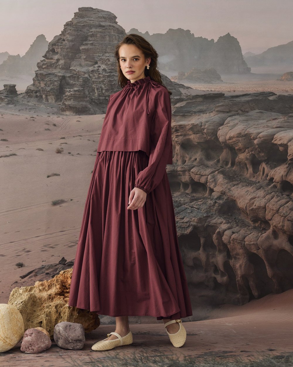 Vual Lastikli Çok Büzgülü Kabarık Etek Kızıl Kahve