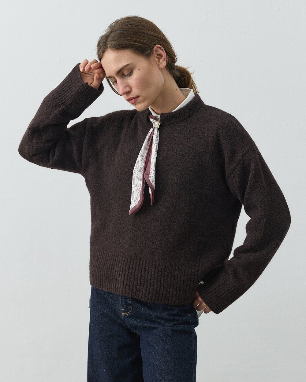 Düğmeli Yaka Kazak Krem - Aybikestil +2 Renk