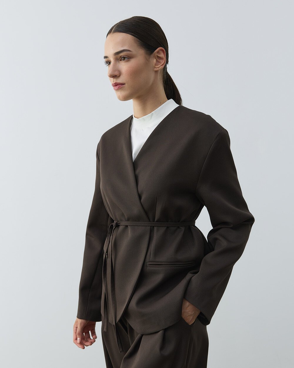 Yakasız Blazer Ceket Acı Kahve