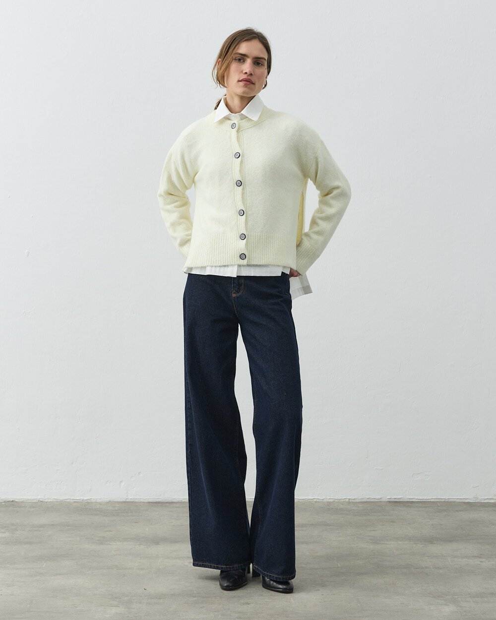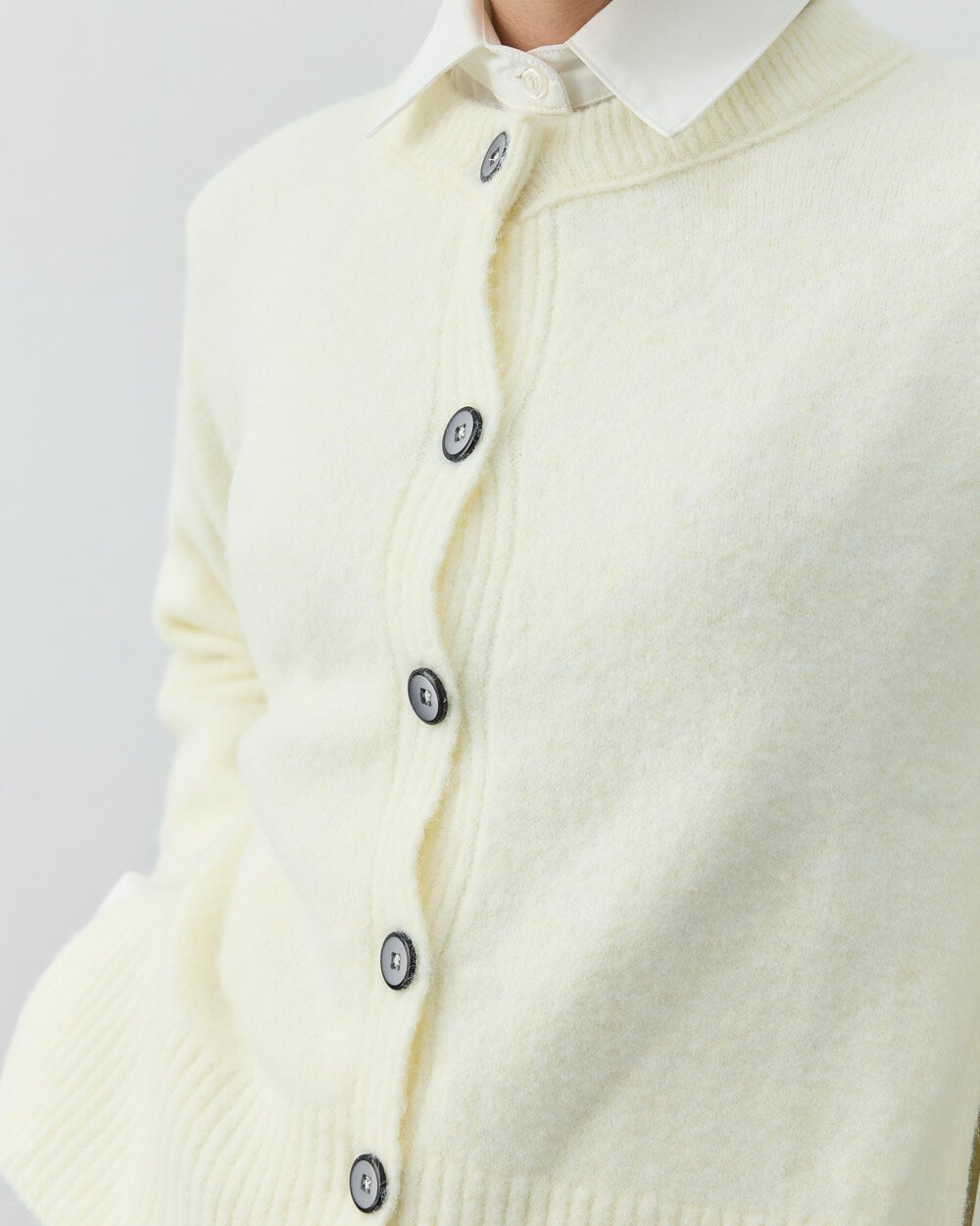 Düğmeli Yaka Kazak Krem - Aybikestil +2 Renk