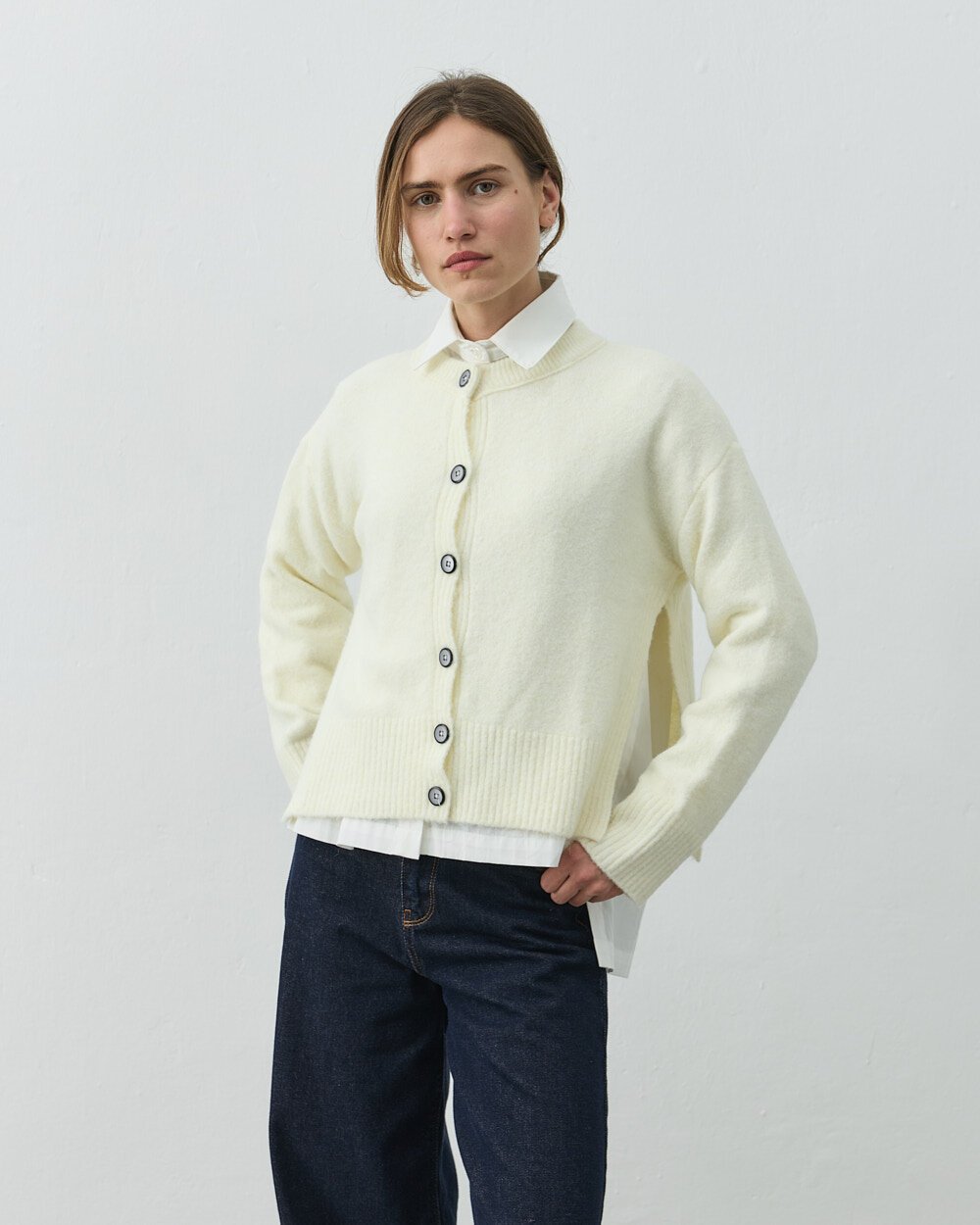 Yandan Yırtmaçlı Hırka Krem
