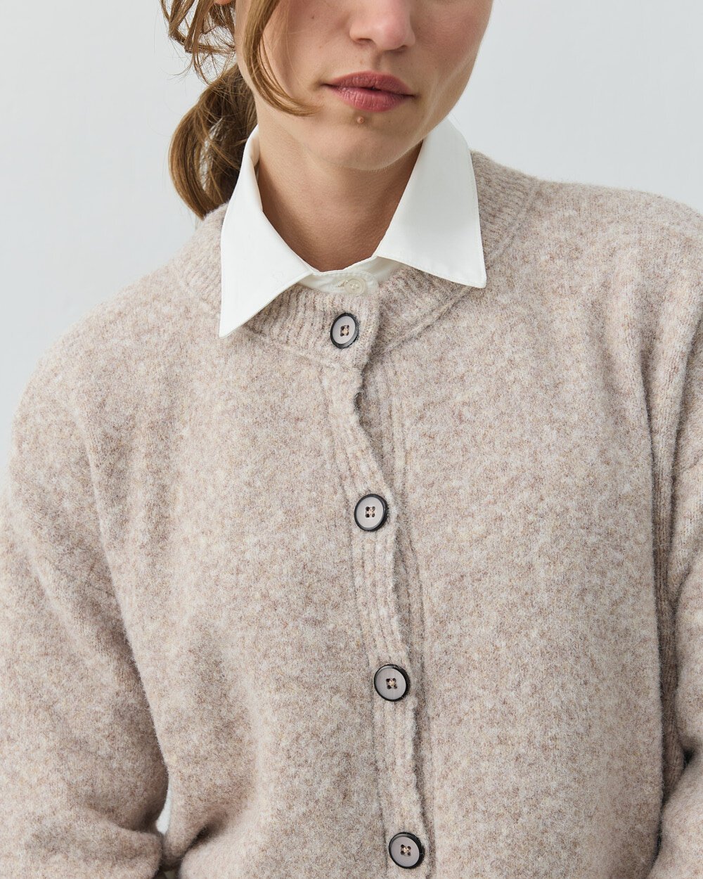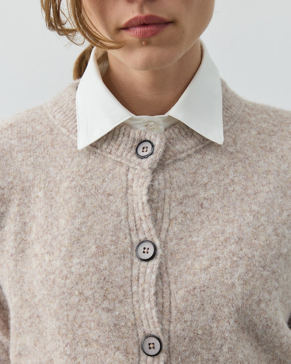Düğmeli Yaka Kazak Krem - Aybikestil +2 Renk