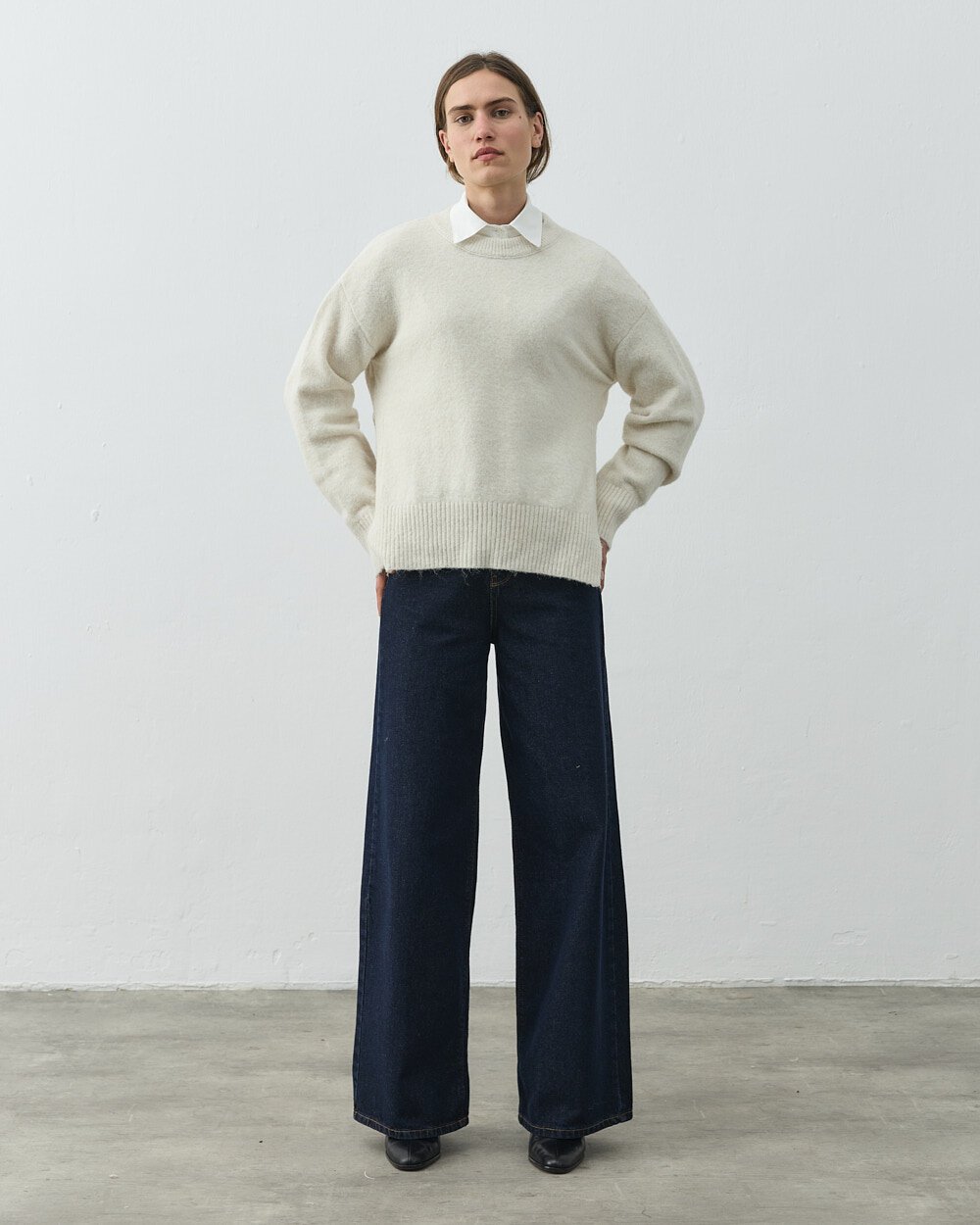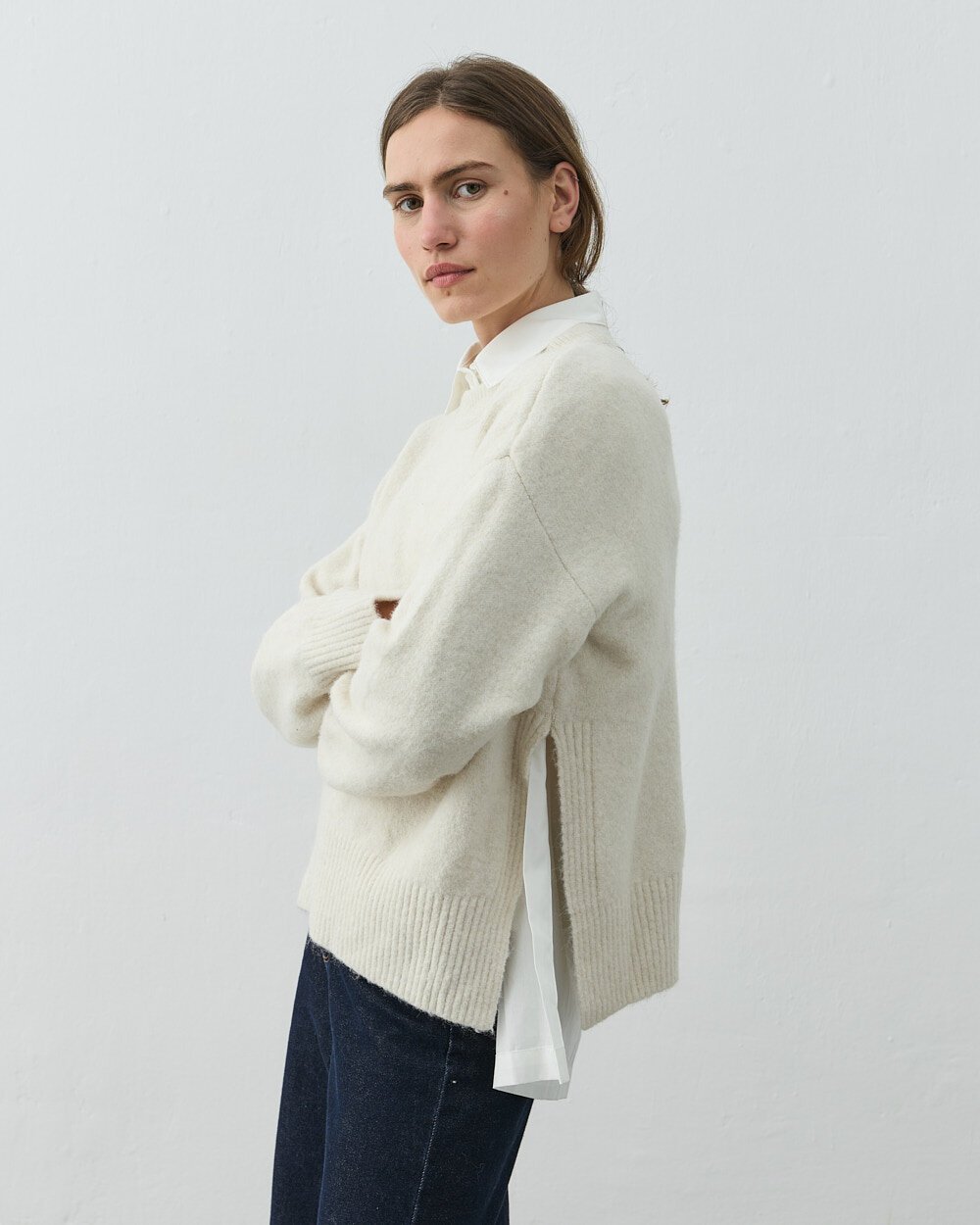 Yırtmaçlı Kazak Krem