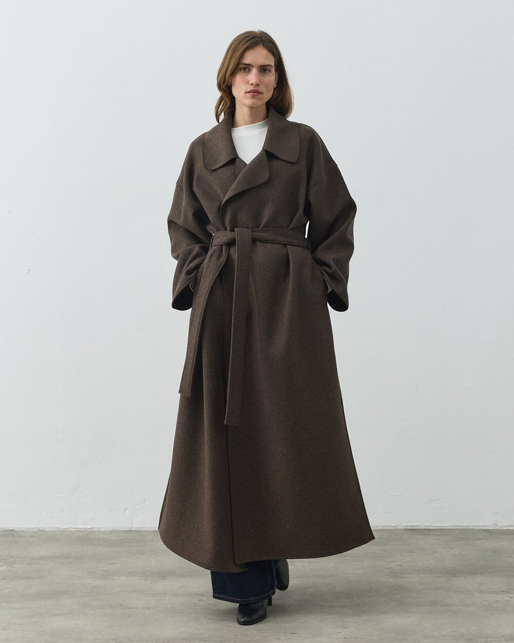 Yün Oversize Yırtmaçlı Kruvaze Kaban